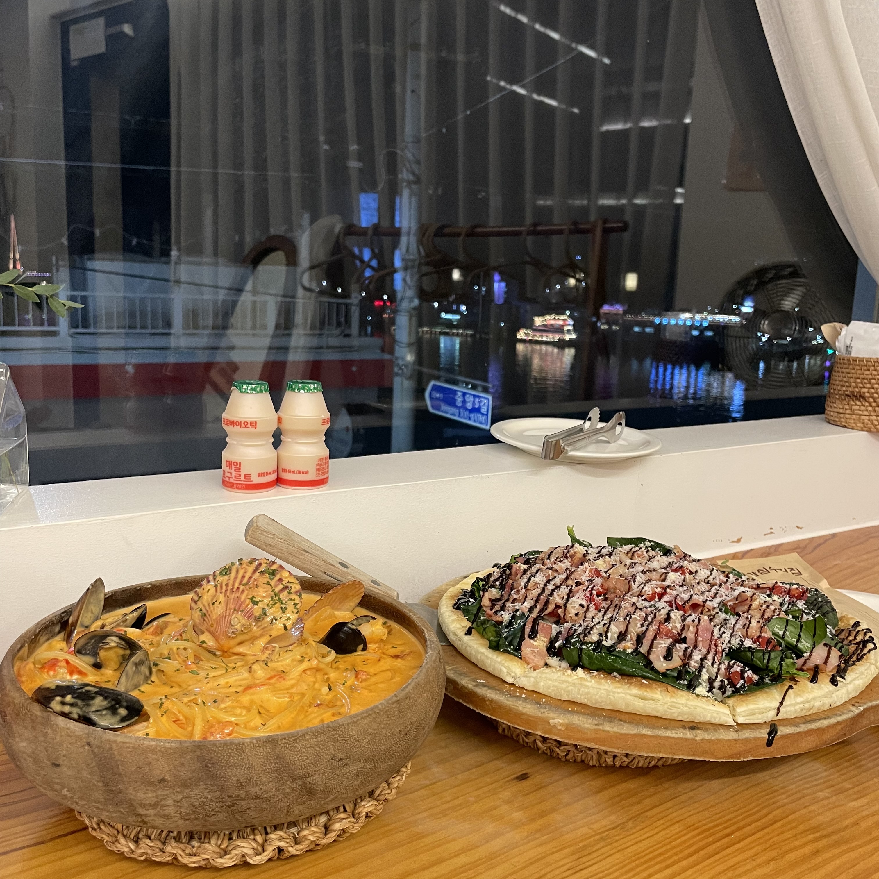 사진만 봐도 해물이 잔뜩들어간것 보이시죠...? 파스타한입 먹으면 해물향도 가득 올라오고, 피자 한입 먹으면 입에 섬초향이 가득해진답니다😭 진짜 너무 맛있었어요!!! 여기도 꼭 추천드립니다..❤️